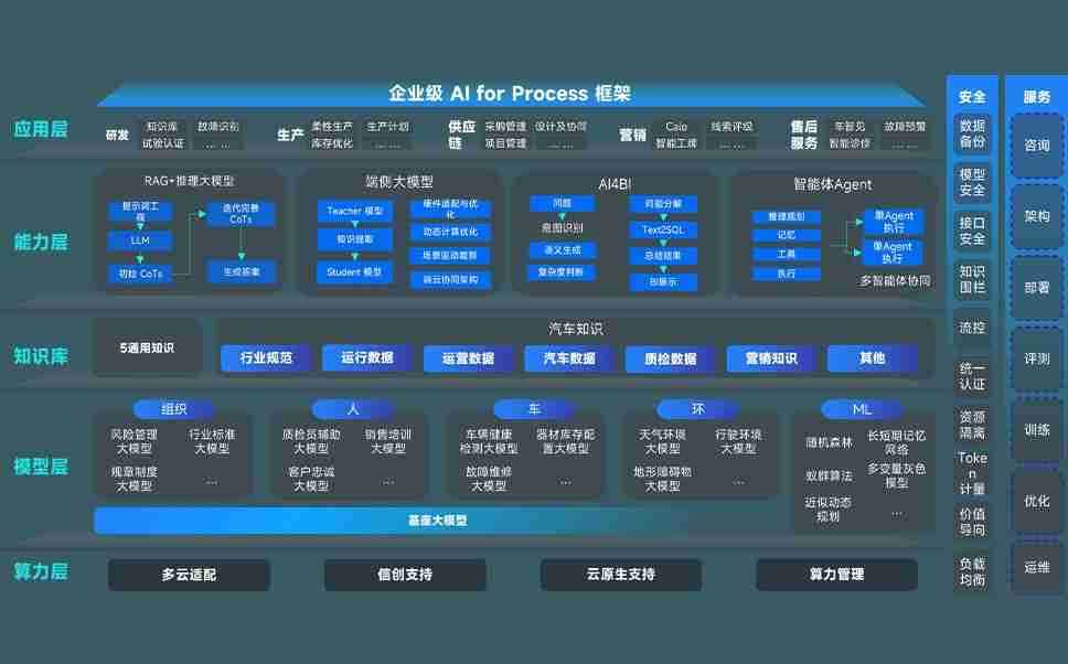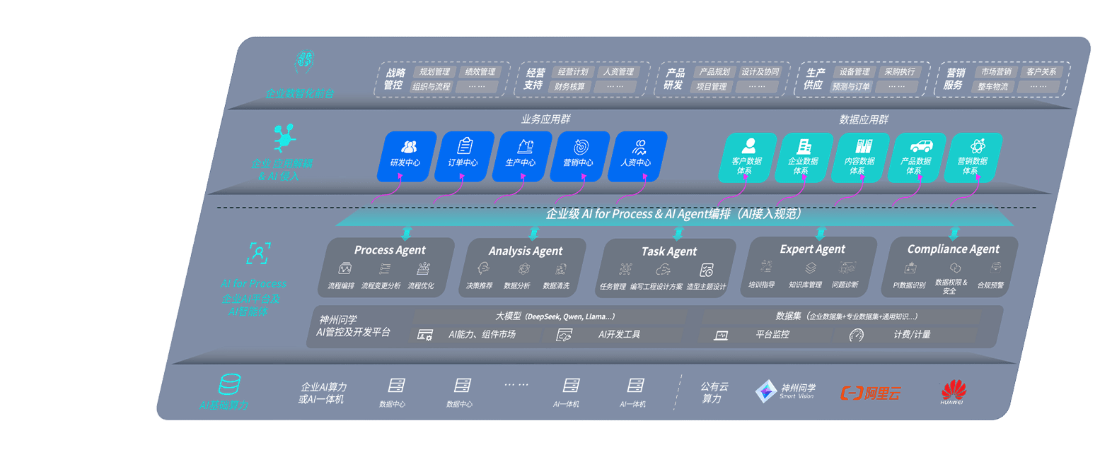 端到端的一站式AI工作空间深度融合了从企业战略规划到日常经营的全流程业务板块,,,,定向解决车企内部领域多、、部门多、、、、链条长、、、场景碎片化等难题,,,,支持车企快速构建以AI为核心的生产力写作体系,,实现任务执行与AI能力的无缝集成与交互